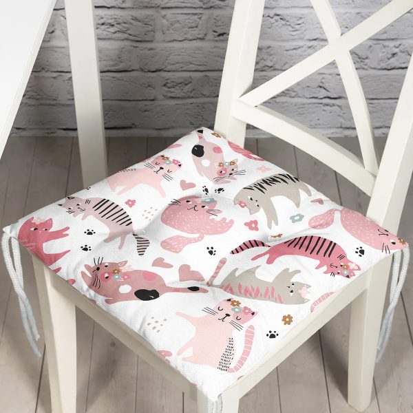 Sevimli Kedi Desenli Dijital Baskılı Modern Pofuduk Sandalye Minderi