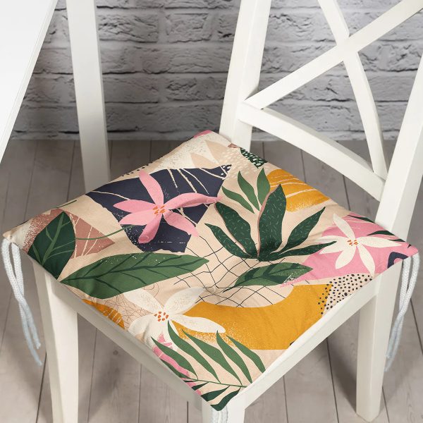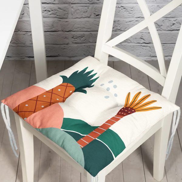 Renkli Zeminli Palmiye Desenli Dijital Baskılı Modern Pofuduk Sandalye Minderi