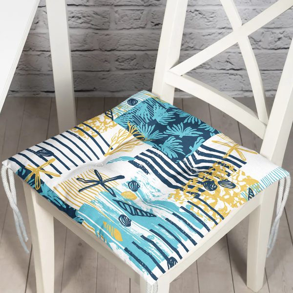 Beyaz Zemin Üzerinde Renkli Deniz Motifli Dijital Baskılı Modern Pofuduk Sandalye Minderi