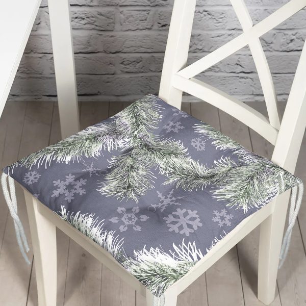 Renkli Zemin Üzerinde Kar tanesi Desenli Dijital Baskılı Modern Pofuduk Sandalye Minderi