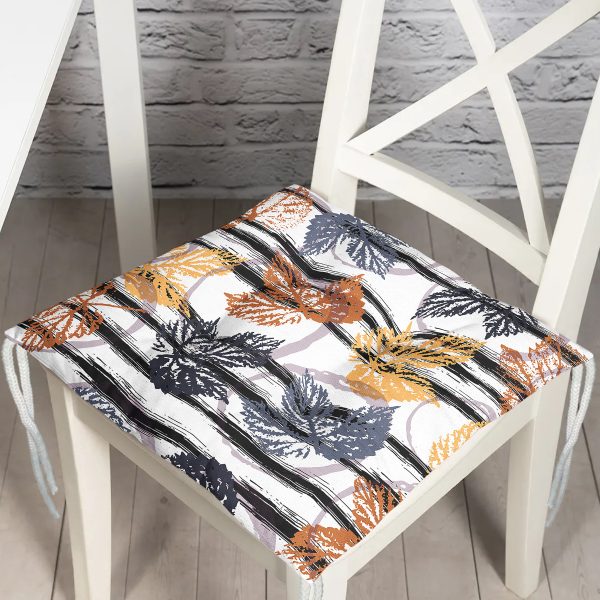 Renkli Zemin Üzerinde Yaprak Desenli Dijital Baskılı Modern Pofuduk Sandalye Minderi