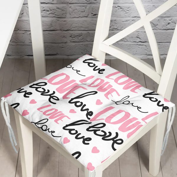 Sevgililer Günü Temalı Özel Tasarım Dijital Baskılı Modern Pofuduk Sandalye Minderi