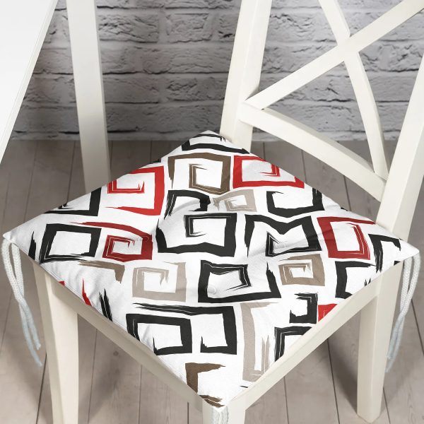 Labirent Çizimli Modern Dijital Baskılı Pofuduk Sandalye Minderi