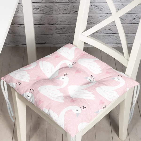 Realhomes Pembe Puan Temalı Kuğu Motifli Modern Pofuduk Sandalye Minderi