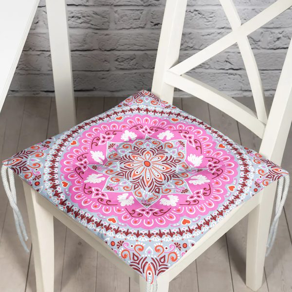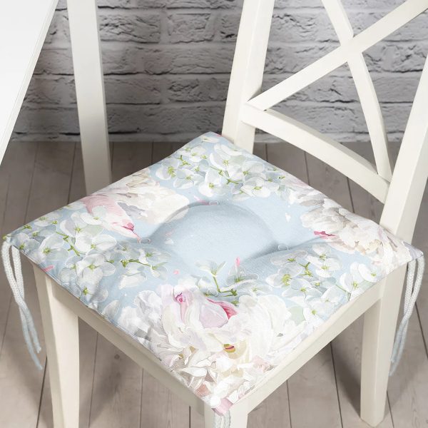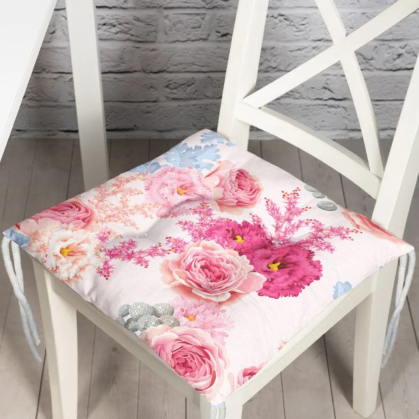 Pudra Çiçekler Temalı Dijital Baskılı Pofuduk Sandalye Minderi