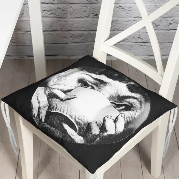 Fornasetti Siyah Beyaz Özel Tasarımlı Pofuduk Sandalye Minderi