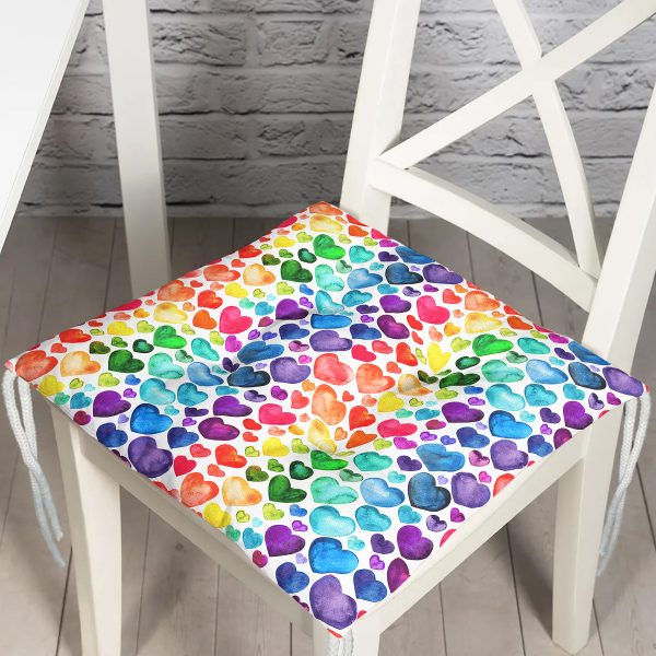 Özel Tasarım Renkli Kalpler Dijital Baskılı Pofuduk Sandalye Minderi