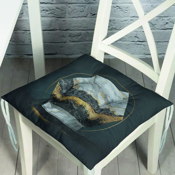 Mermer Ve Altınlı 3D Altıgen Desenli Dijital Baskılı Modern Pofuduk Sandalye Minderi