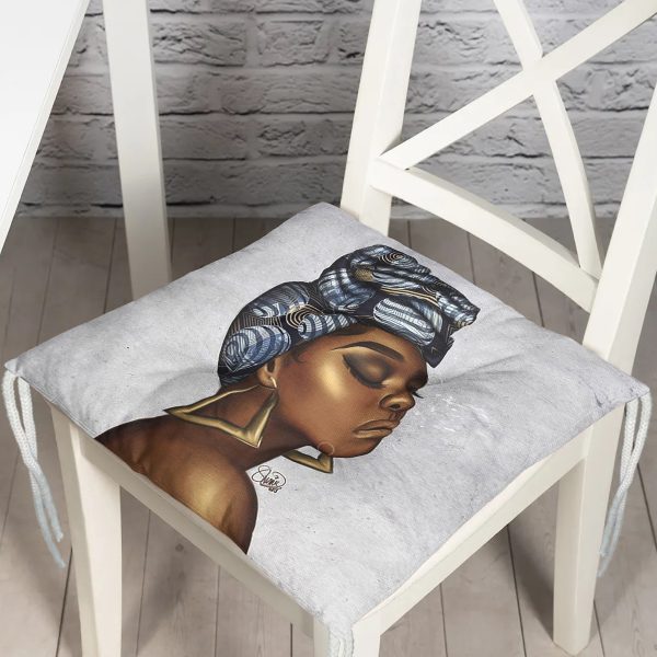 Realhomes Gri Zeminde Etnik Afrikan Woman Tasarımlı Pofuduk Sandalye Minderi