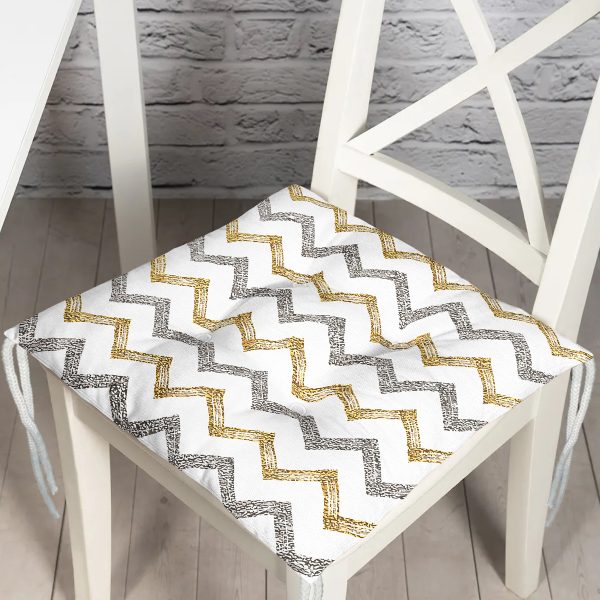 Beyaz Zeminde Gold Ve Siyah Çizgili Dijital Baskılı Modern Pofuduk Sandalye Minderi