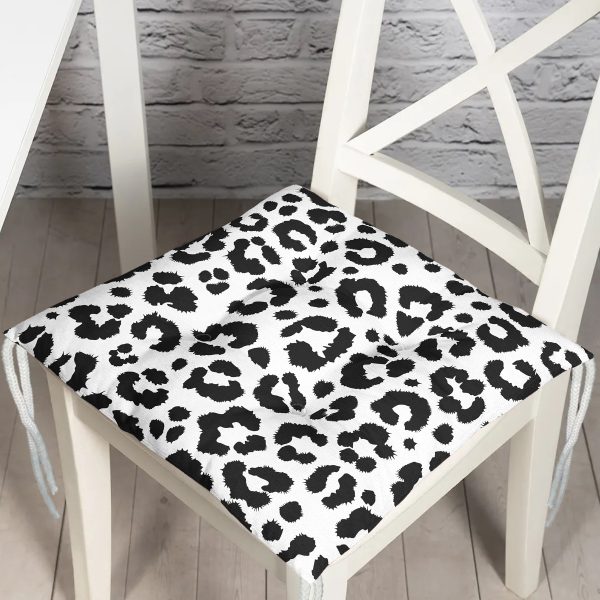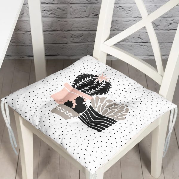 Beyaz Zemin Üzerinde Siyah Puantiyeli Kaktüs Desenli Dijital Baskılı Modern Pofuduk Sandalye Minderi