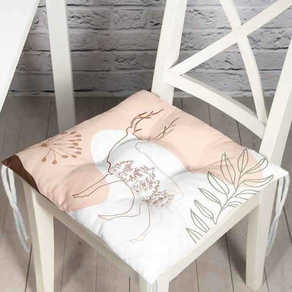 Renkli Zeminli Onedraw Çizimli Geyik Desenli Dijital Baskılı Modern Pofuduk Sandalye Minderi