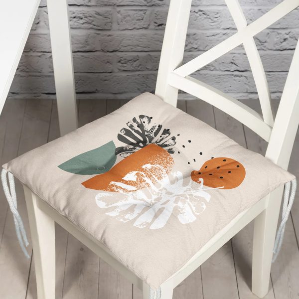 Pastel Zeminli Yaprak Desenli Dijital Baskılı Modern Pofuduk Sandalye Minderi