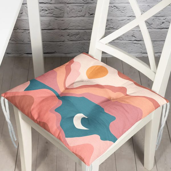 Renkli Zemin Üzerinde Onedraw Çizimli Dijital Baskılı Modern Pofuduk Sandalye Minderi