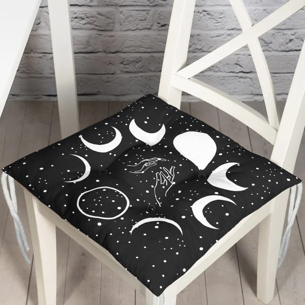 Özel Tasarım Siyah Zemin Ay Desenli Dijital Baskılı Modern Pofuduk Sandalye Minderi