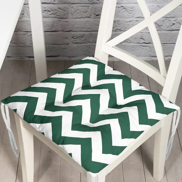 Yeşil Zikzak Tasarımlı Dijital Baskılı Modern Pofuduk Sandalye Minderi