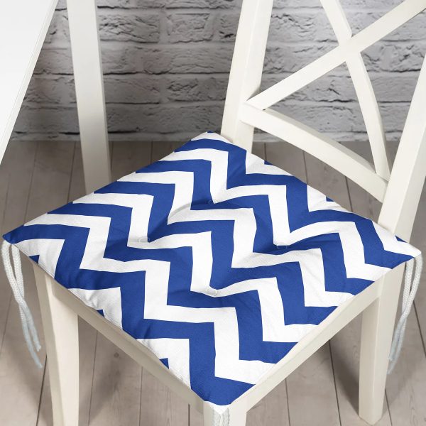 Lacivert Zikzak Tasarımlı Dijital Baskılı Modern Pofuduk Sandalye Minderi