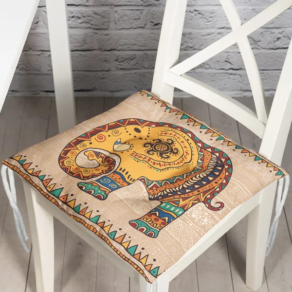Etnik Figürlü Fil Desenli Dijital Baskılı Modern Pofuduk Sandalye Minderi