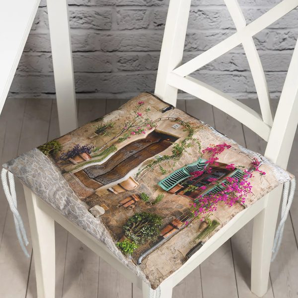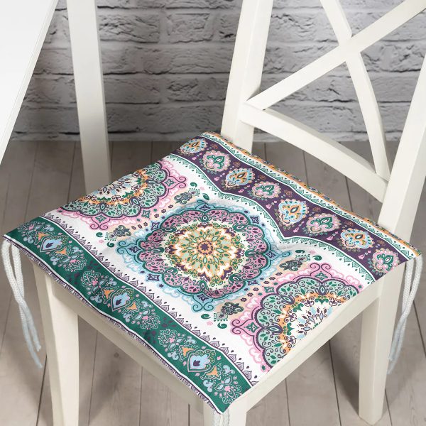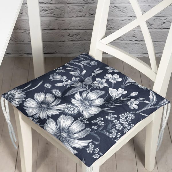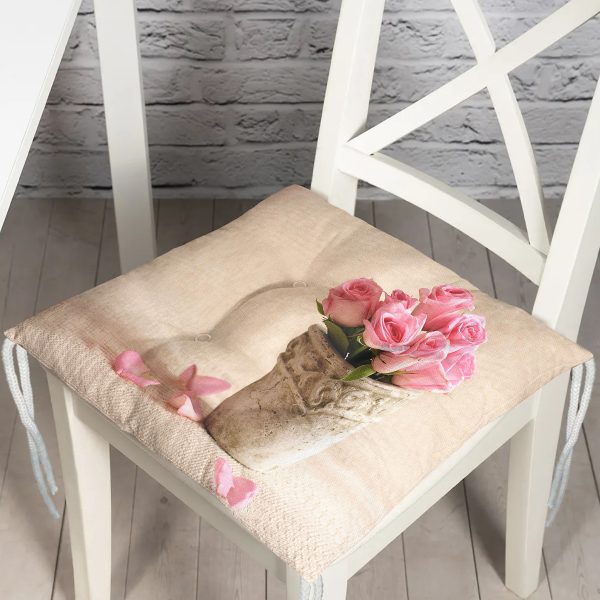 Çiçek Desenli Dekorati Kare Sandalye Minderi 40x40cm Fermuarlı