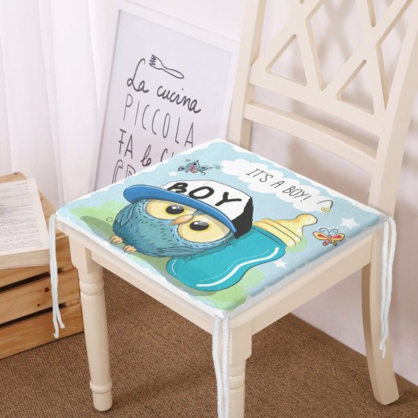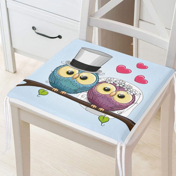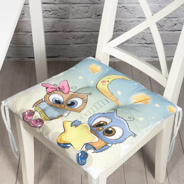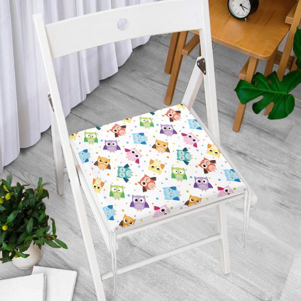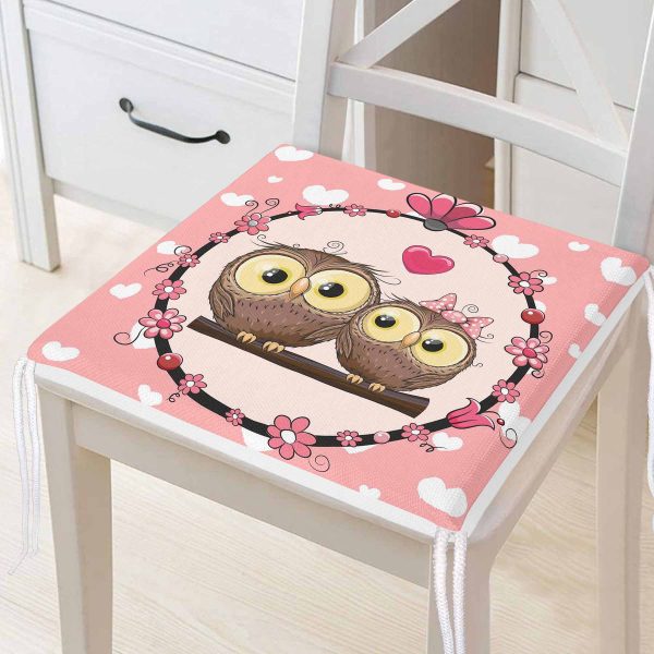 Baykuş Desenli Dekorati Kare Sandalye Minderi