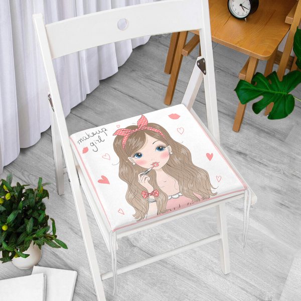 Kalp Desenli Dekorati Kare Sandalye Minderi 40x40cm Fermuarlı