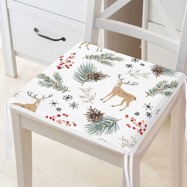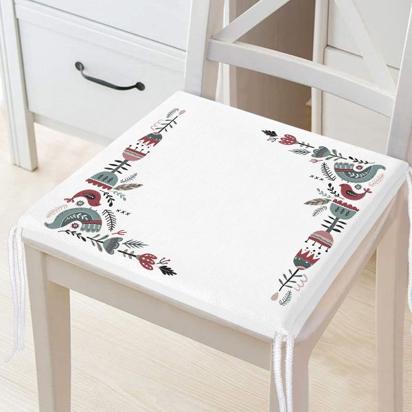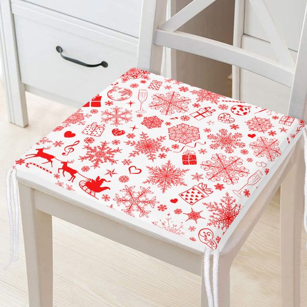 Beyaz Zemin Yılbaşı Temalı Özel Tasarımlı Dijital Baskılı Modern Fermuarlı Sandalye Minderi