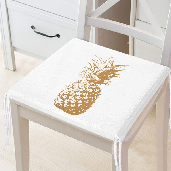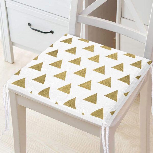 Beyaz Zeminde Gold Üçgen Detaylı Dijital Baskılı Modern Fermuarlı Sandalye Minderi