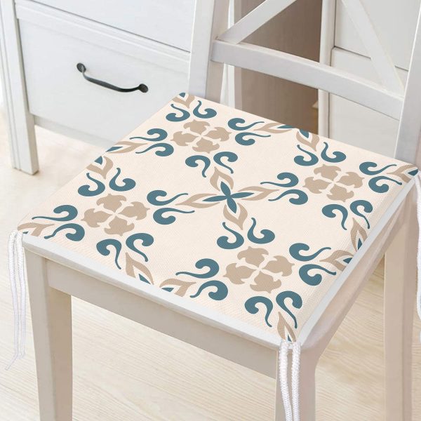 Krem Zeminli Dijital Baskılı Modern Fermuarlı Sandalye Minderi