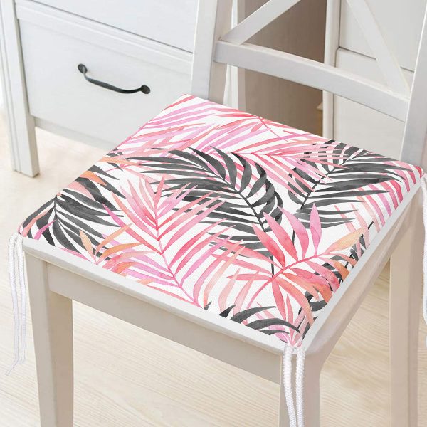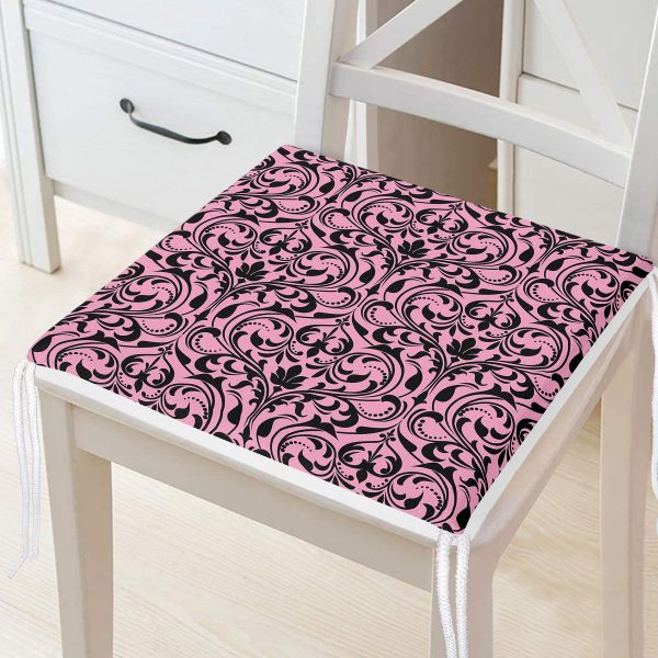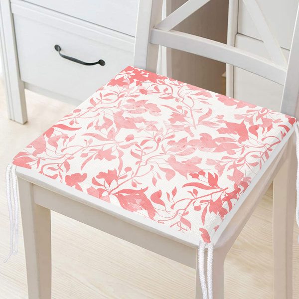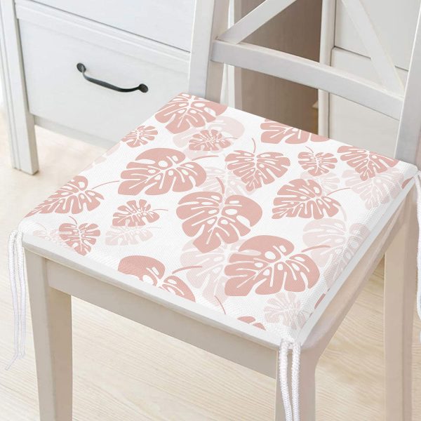 Pembe Yaprak Temalı Dijital Baskılı Fermuarlı Sandalye Minderi
