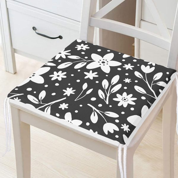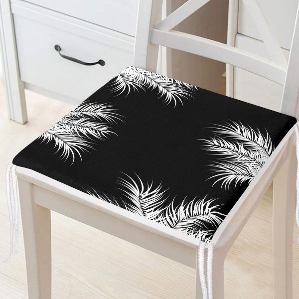 Siyah Zemin Üzerinde Beyaz Yaprak Desenli Dijital Baskılı Modern Fermuarlı Sandalye Minderi