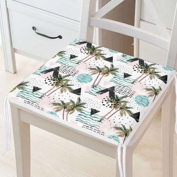 Üçgen Şekilli Palmiye Motifli Dijital Baskılı Fermuarlı Sandalye Minderi