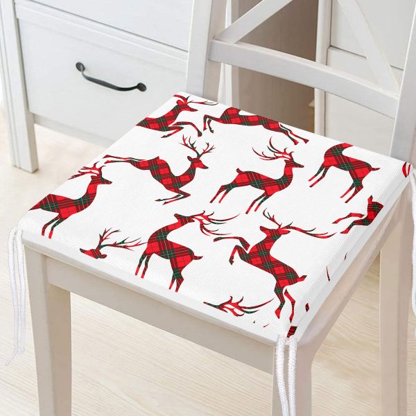Ekose Renkli Geyik Desenli Özel Tasarımlı Dijital Baskılı Modern Fermuarlı Sandalye Minderi