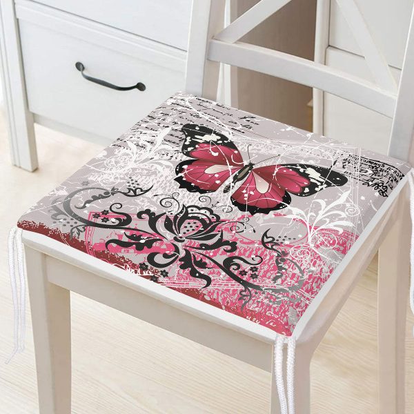 Kelebek Tasarımlı Dijital Baskılı Dekoratif Modern Fermuarlı Sandalye Minderi