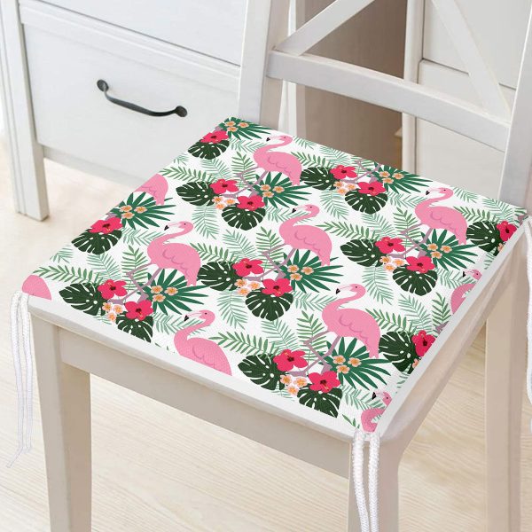 Realhomes Flamingo Devetabanı Çizimli Özel Tasarım Dijital Baskılı Modern Fermuarlı Sandalye Minderi