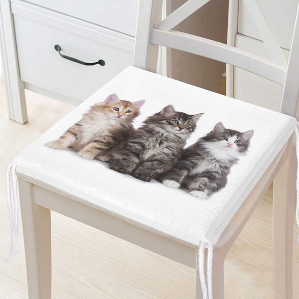 Sevimli Kediler Desenli Dijital Baskılı Modern Fermuarlı Sandalye Minderi