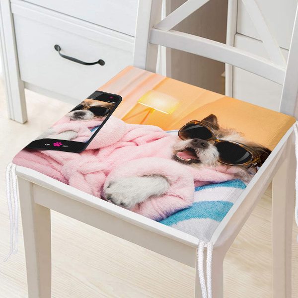 Selfie Çekinen Köpek Modern Fermuarlı Sandalye Minderi