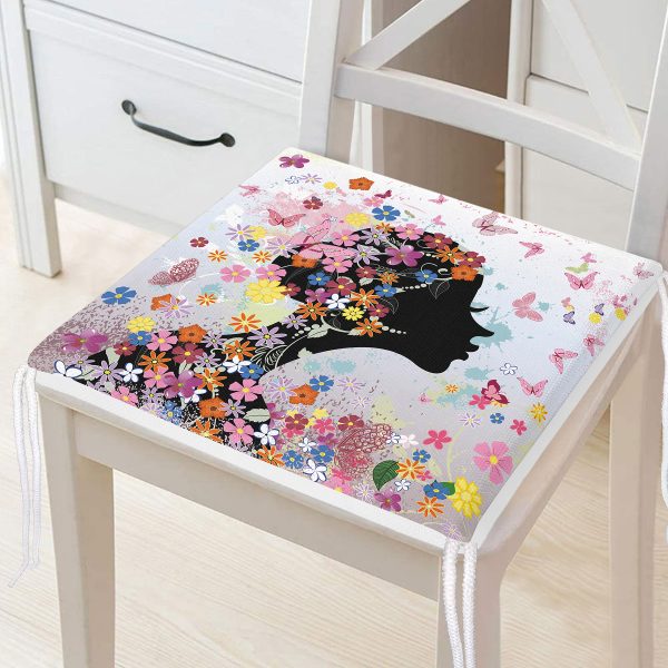 Modern Çiçekli Afrika Kadın Desenli Dijital Baskılı Fermuarlı Sandalye Minderi