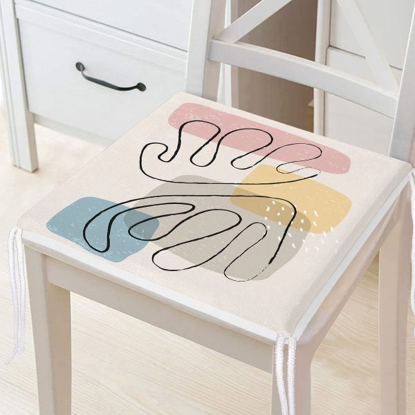Renkli Zeminde Onedraw Çizimli Obje Dijital Baskılı Modern Fermuarlı Sandalye Minderi