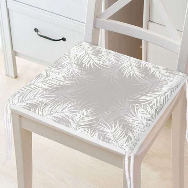 Gri Zemin Üzerinde Beyaz Yaprak Desenli Dijital Baskılı Modern Fermuarlı Sandalye Minderi