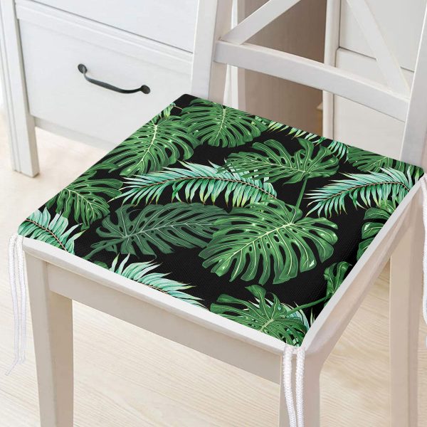 Siyah Zemin Üzerinde Yeşil Yaprak Desenli Dijital Baskılı Modern Fermuarlı Sandalye Minderi