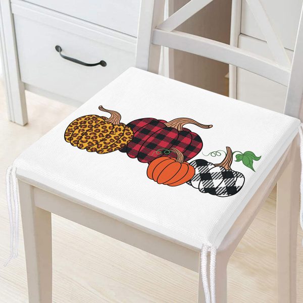 Beyaz Zemin Üzerinde Ekoseli Balkabakları Dijital Baskılı Modern Fermuarlı Sandalye Minderi