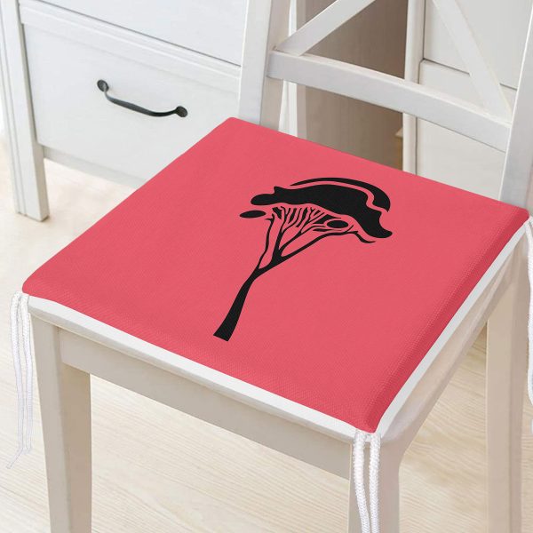 Renkli Zemin Üzerinde Onedraw Çizimli Ağaç Desenli Dijital Baskılı Modern Fermuarlı Sandalye Minderi