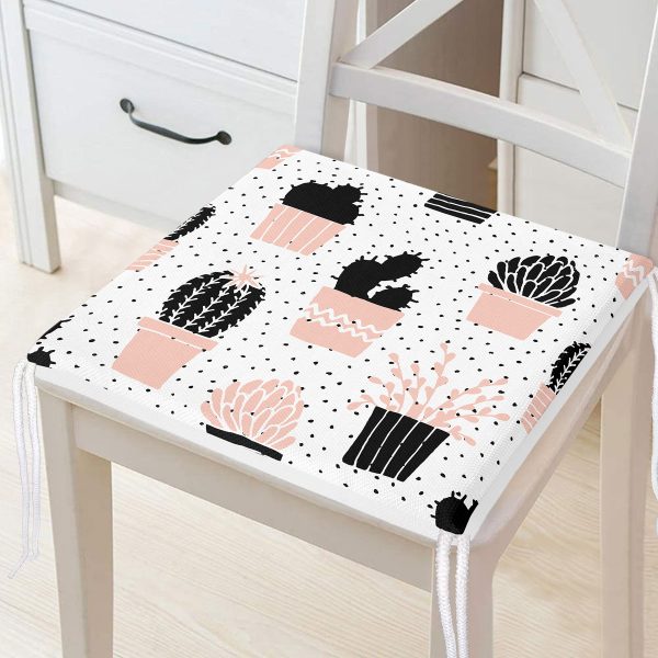 Beyaz Zemin Üzerinde Siyah Puantiyeli Kaktüs Desenli Dijital Baskılı Modern Fermuarlı Sandalye Minderi