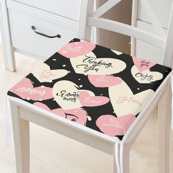 Sevgililer Günü Temalı Özel Tasarım Dijital Baskılı Modern Fermuarlı Sandalye Minderi