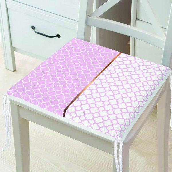 Pembe & Beyaz Ogea Desenli Dijital Baskılı Modern Fermuarlı Sandalye Minderi