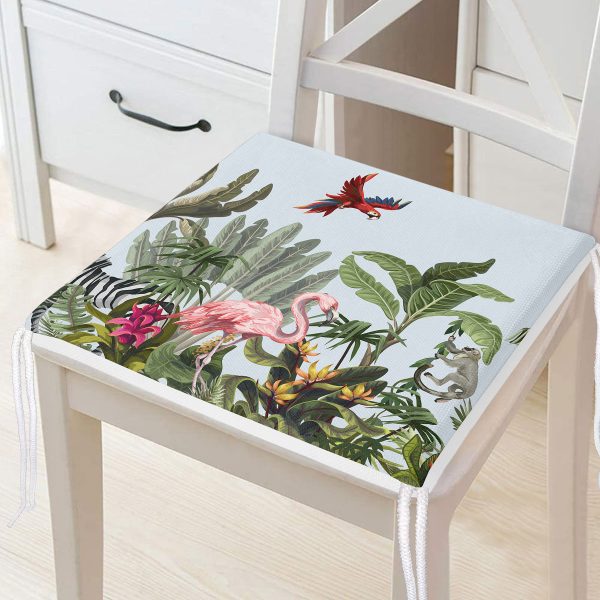 Tropikal Orman Yaprakları & Hayvanları Dijital Baskılı Fermuarlı Sandalye Minderi
