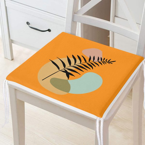 Pastel Zemin Üzerinde Beyaz Yaprak Desenli Dijital Baskılı Modern Fermuarlı Sandalye Minderi