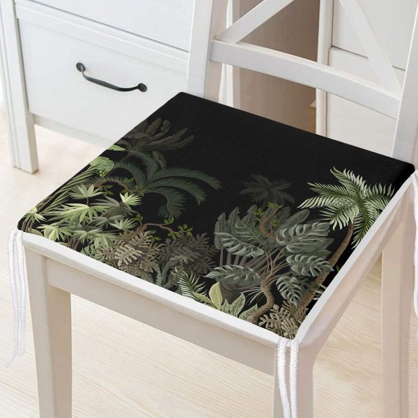 Siyah Zemin Tropik Orman Temalı Fermuarlı Sandalye Minderi