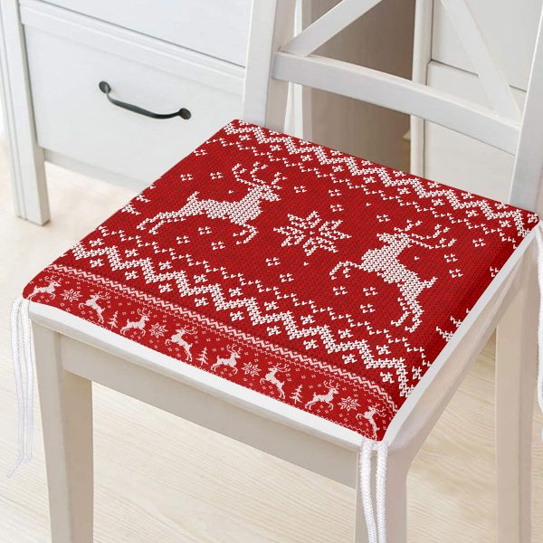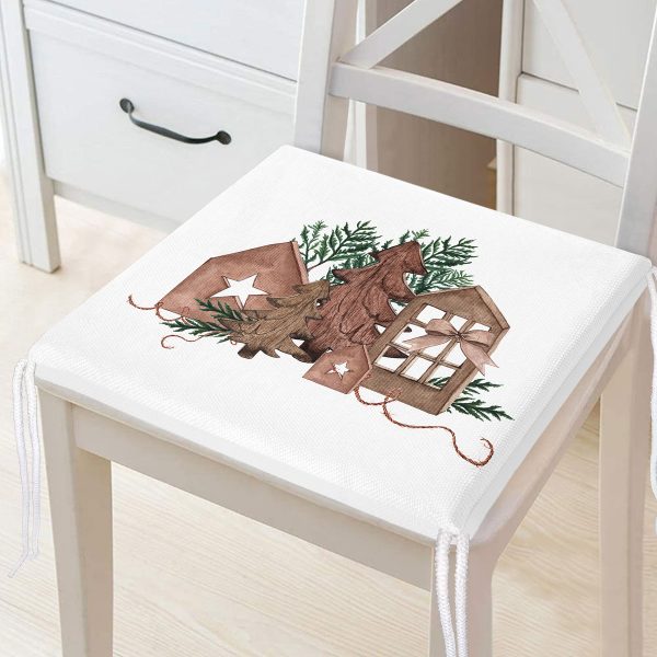 Kanaviçe Geyik Desenli Özel Tasarımlı Dijital Baskılı Modern Fermuarlı Sandalye Minderi