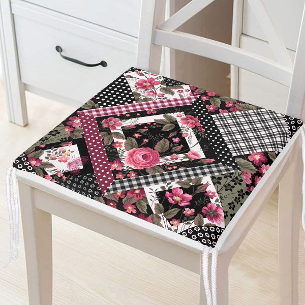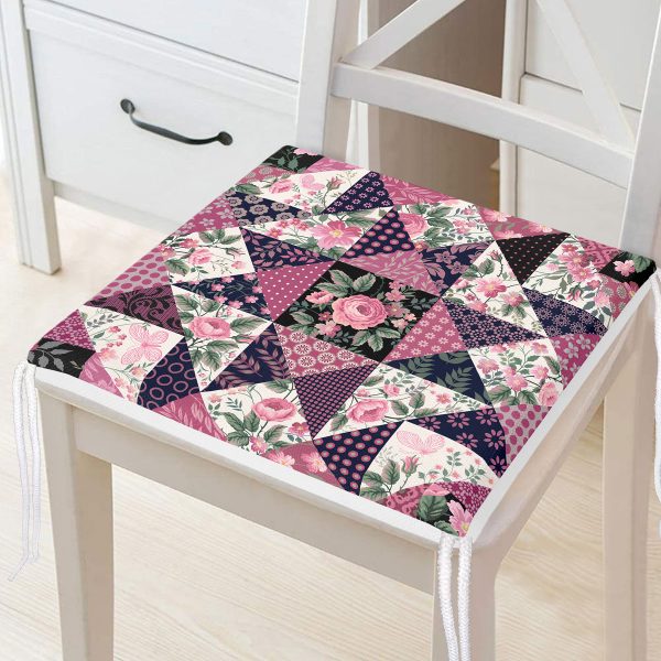 Mürdüm Renk Patchwork Desenli Fermuarlı Sandalye Minderi